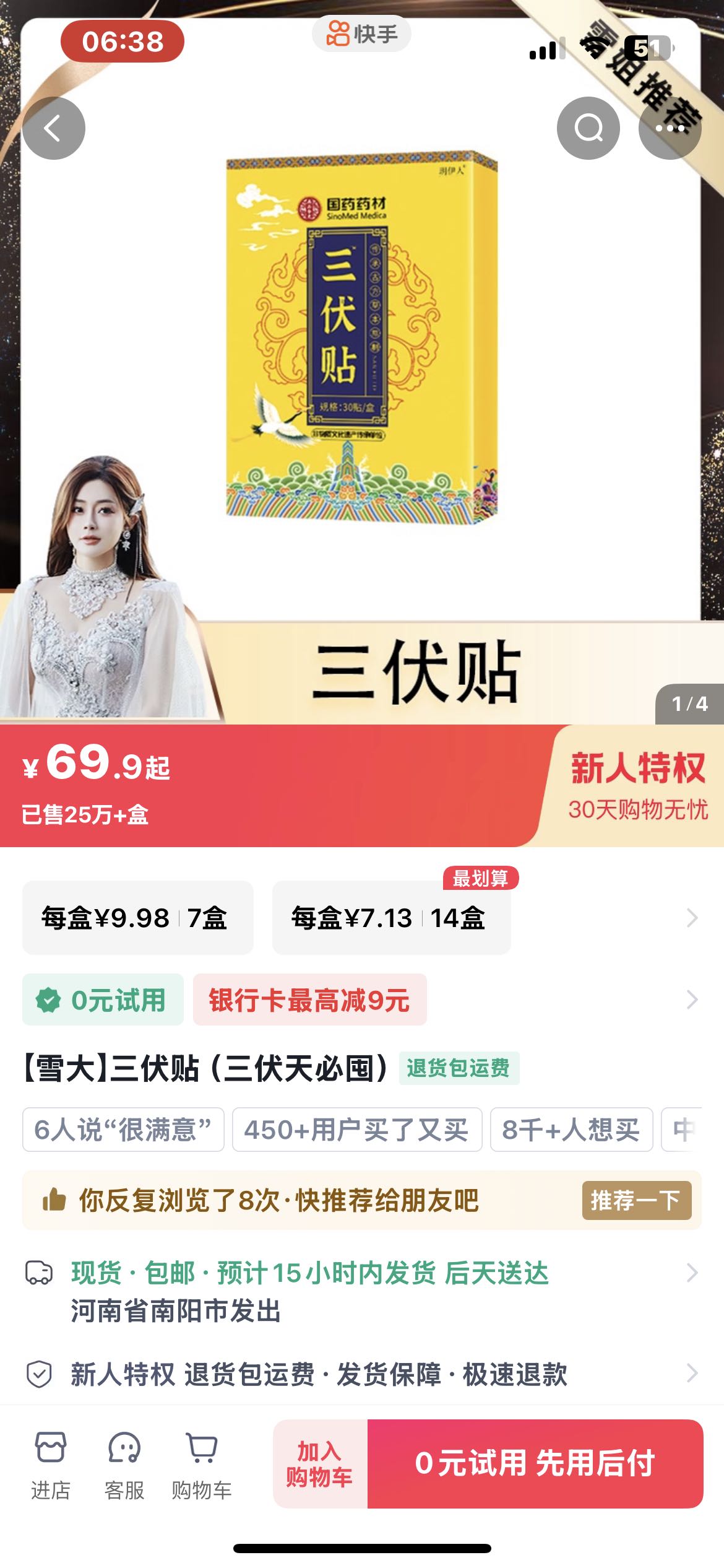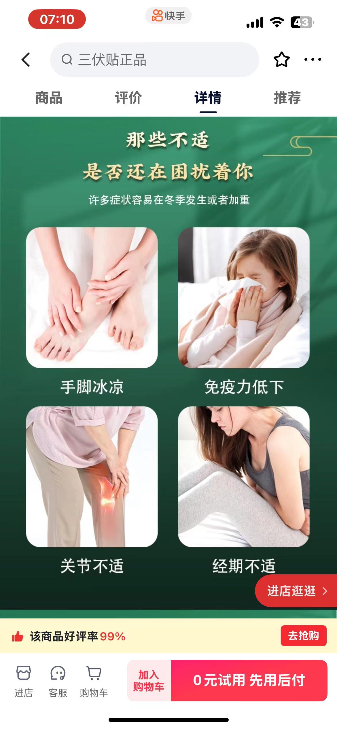 刘江在快手平台购买了由南阳晟世集团生物科技有限公司生产的非药品国药药材“三伏贴”1盒,售价为69.9元/盒。推荐销售店铺为快手初瑞雪店播14号(玥伊人)推荐的(经查系假冒)该产品属非药品,却在平台所推荐的页面出现。那些不适是否还在困扰着你 许多症状容易在冬季发生或者加重,手脚冰凉、免疫力低下、关节不适 、经期不适。涉案产品包装盒内以宣传资料“常用病例施灸取穴参考表”、“常用体穴参照表”、“四穴养生法”,上述用语属于明示和暗示该产品具有多种医疗作用,属于误导和欺诈消费者。